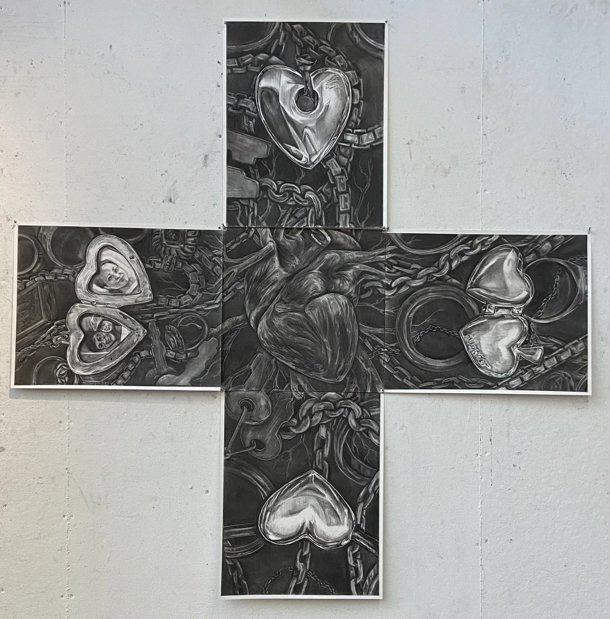 Heart Healing Jewelry; 6ft x 6 ft; charcoal on bristol paper