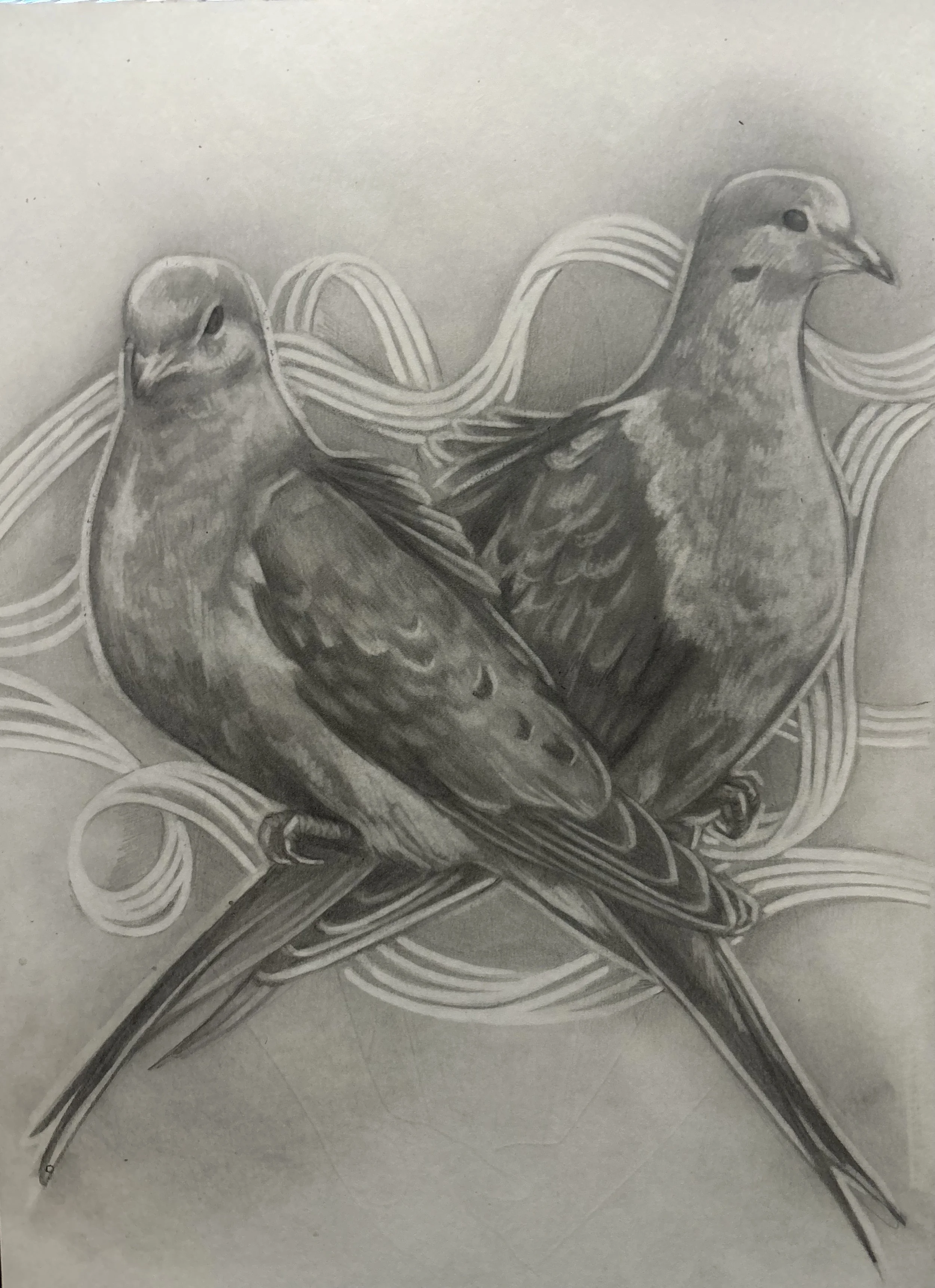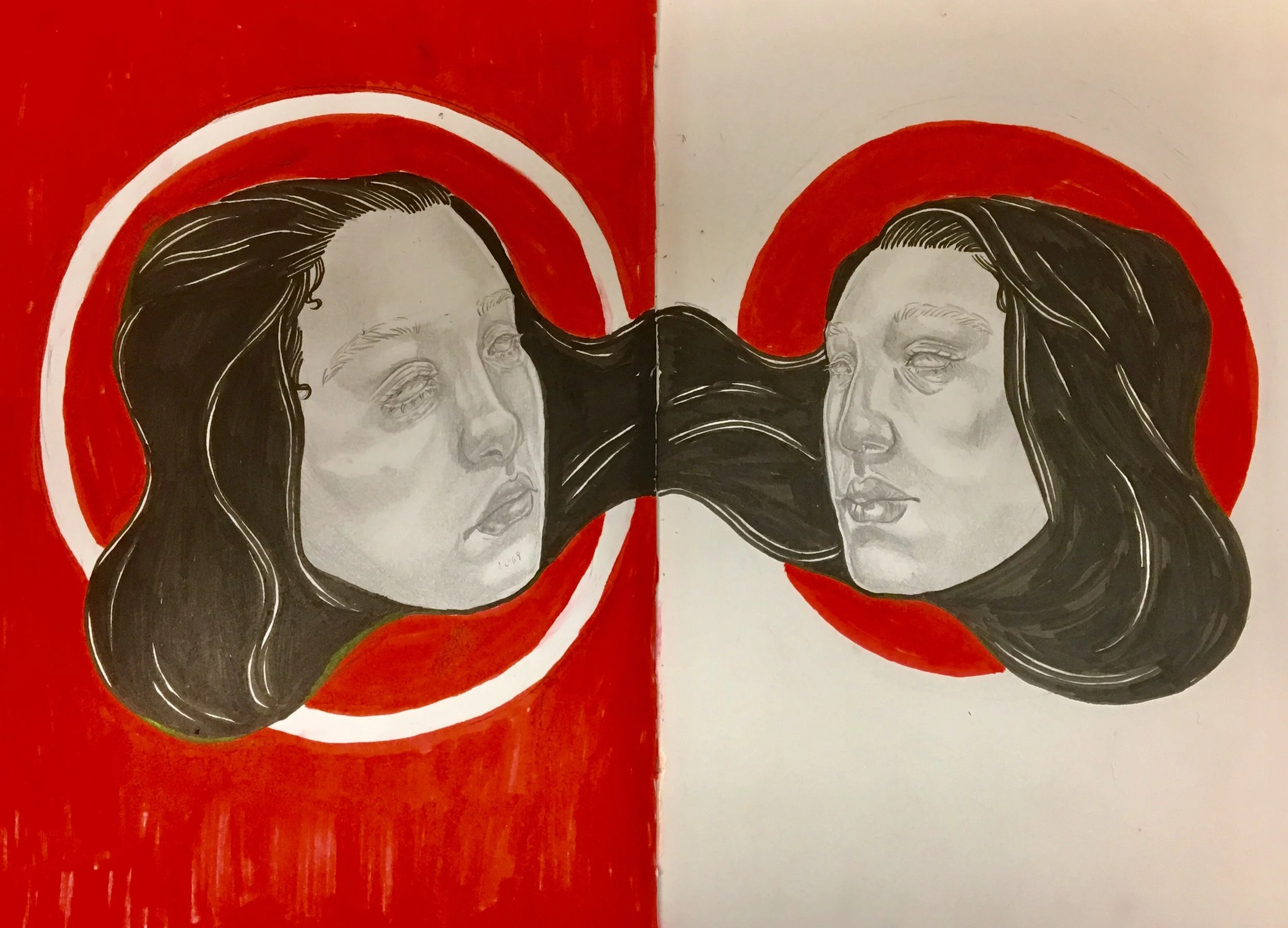 Of the Same Mind; 12” x 8”; graphite and ink on paper