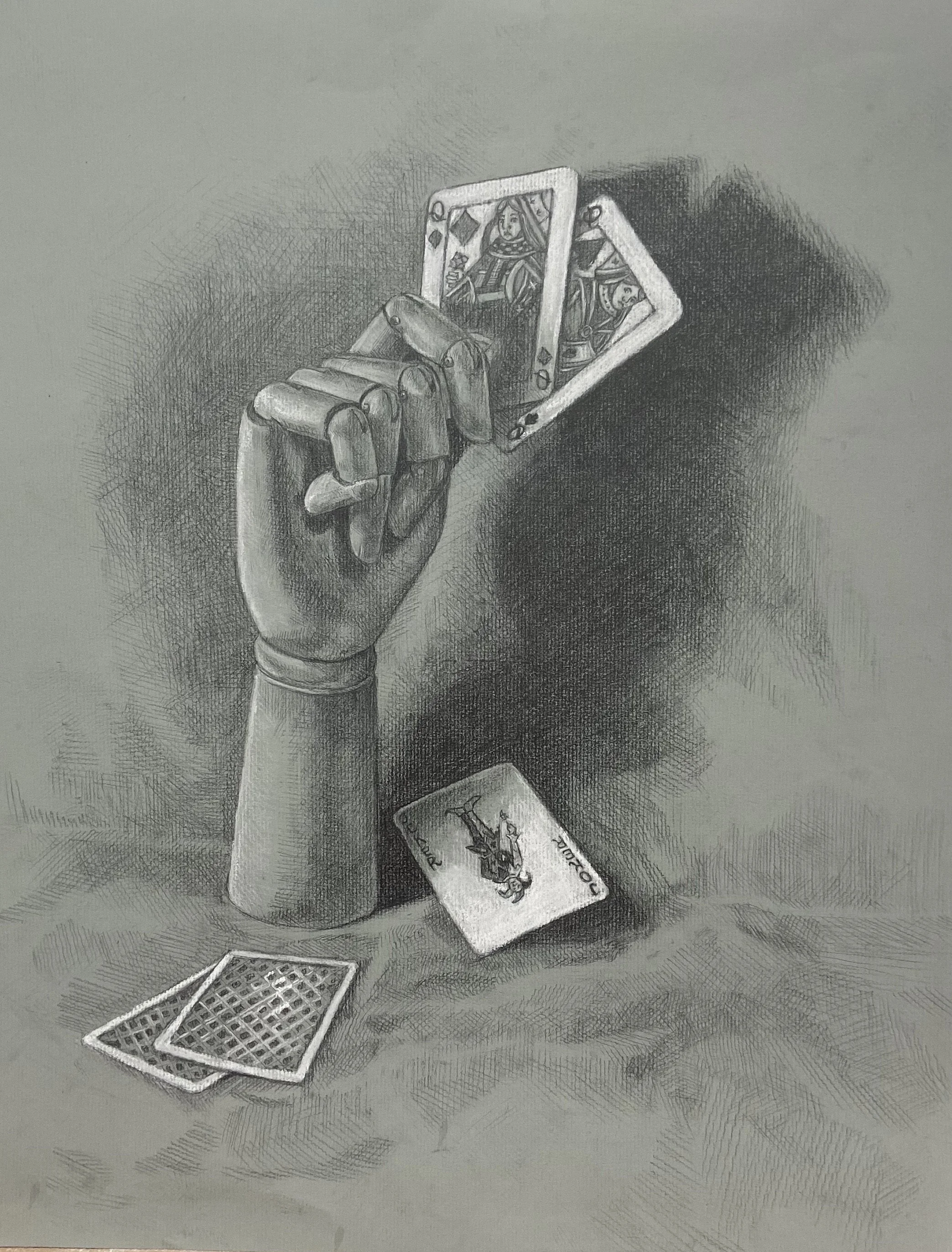 Two Queens Make a Pair; 17” x 14”; charcoal on toned paper