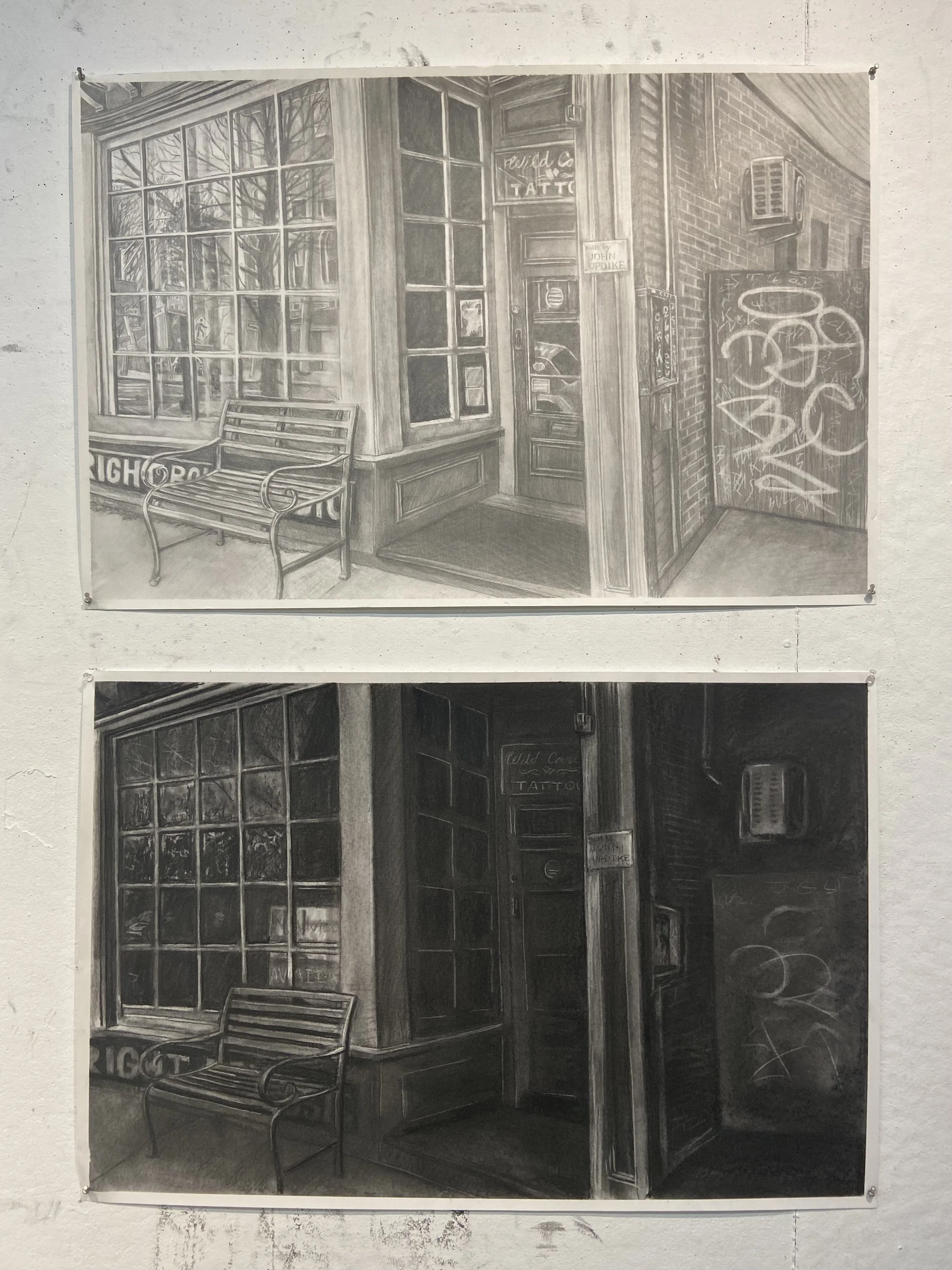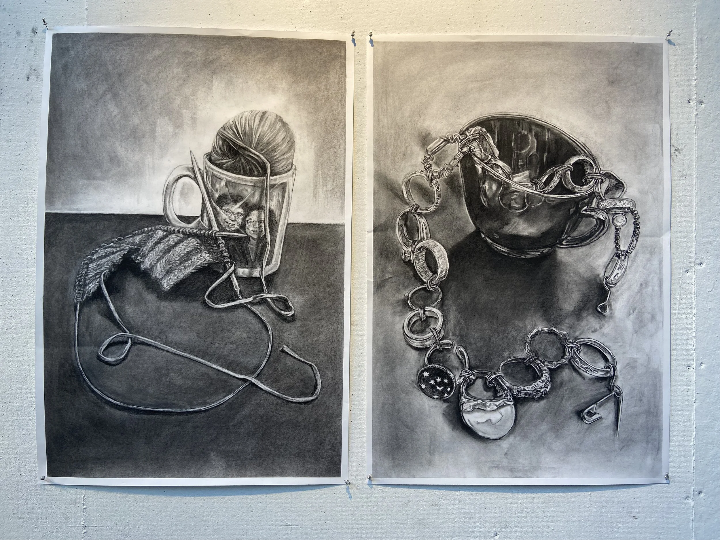 Works in Progress Still Lifes; 2ft x 3ft each; charcoal on paper