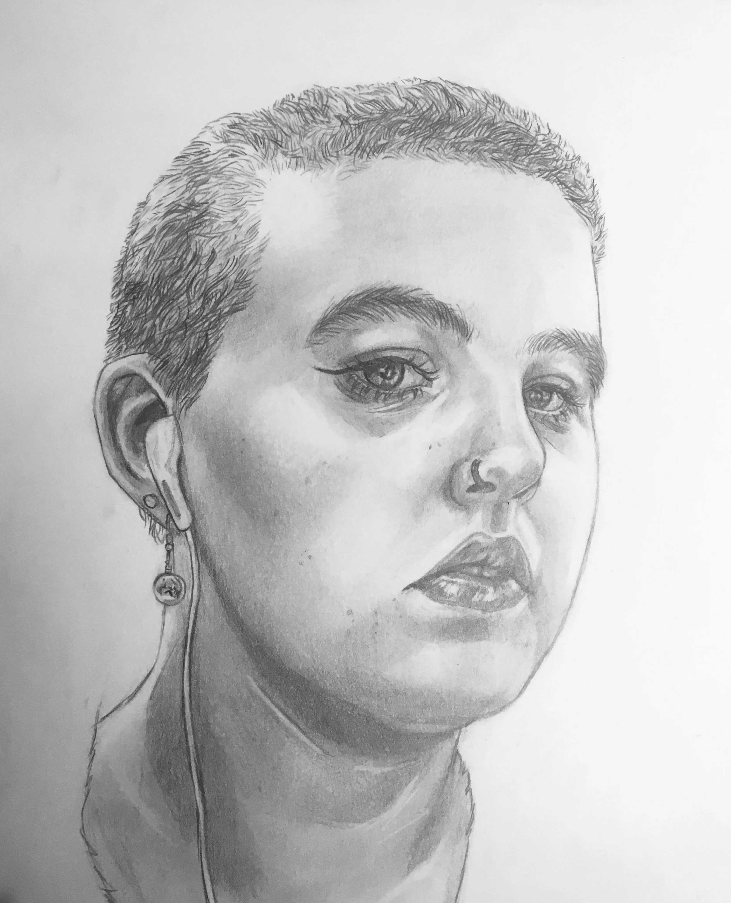 20th Birthday Self Portrait; 11” x 14” graphite on paper