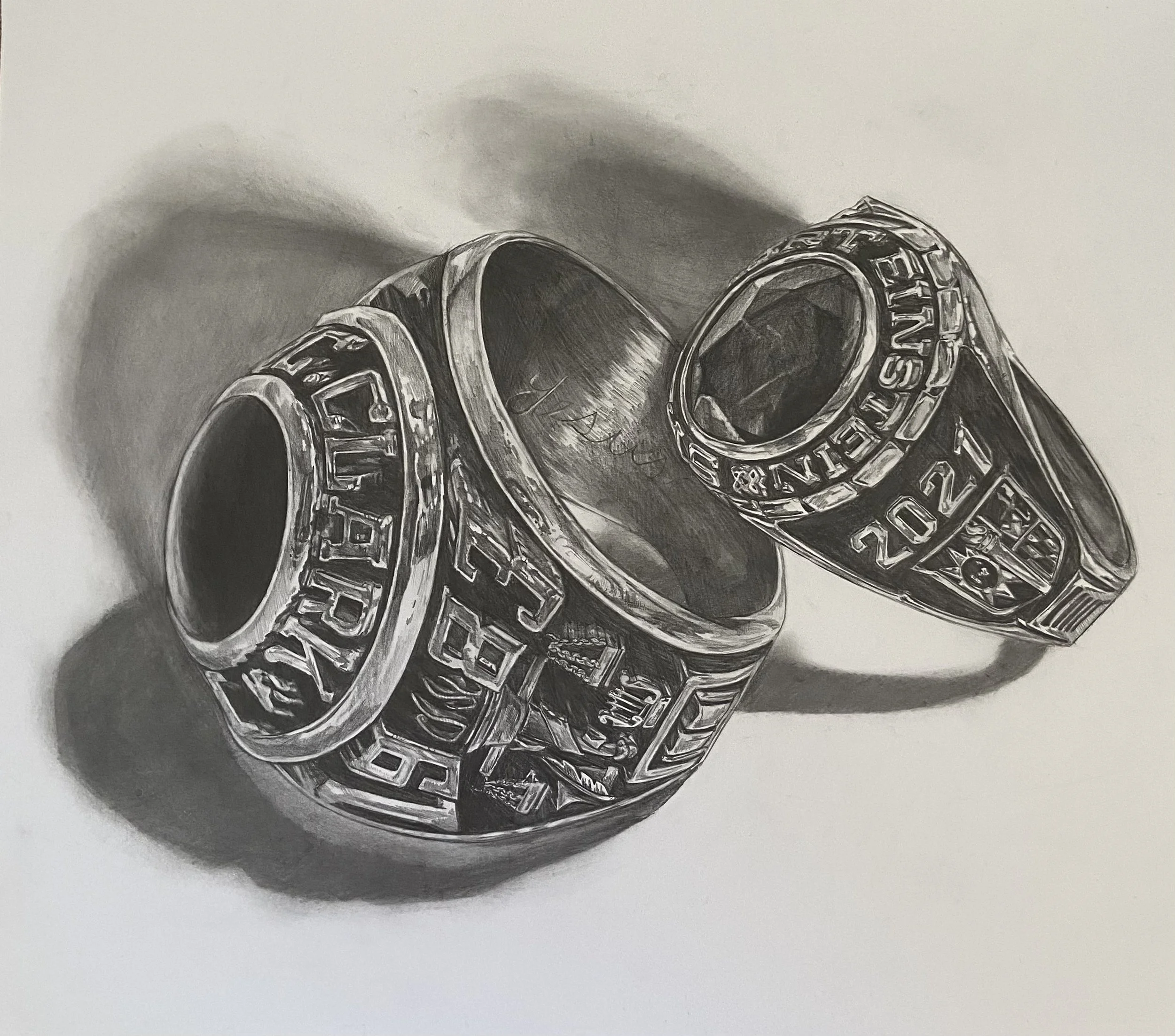 Father Daughter Class Rings; 11” x 14”; graphite on paper