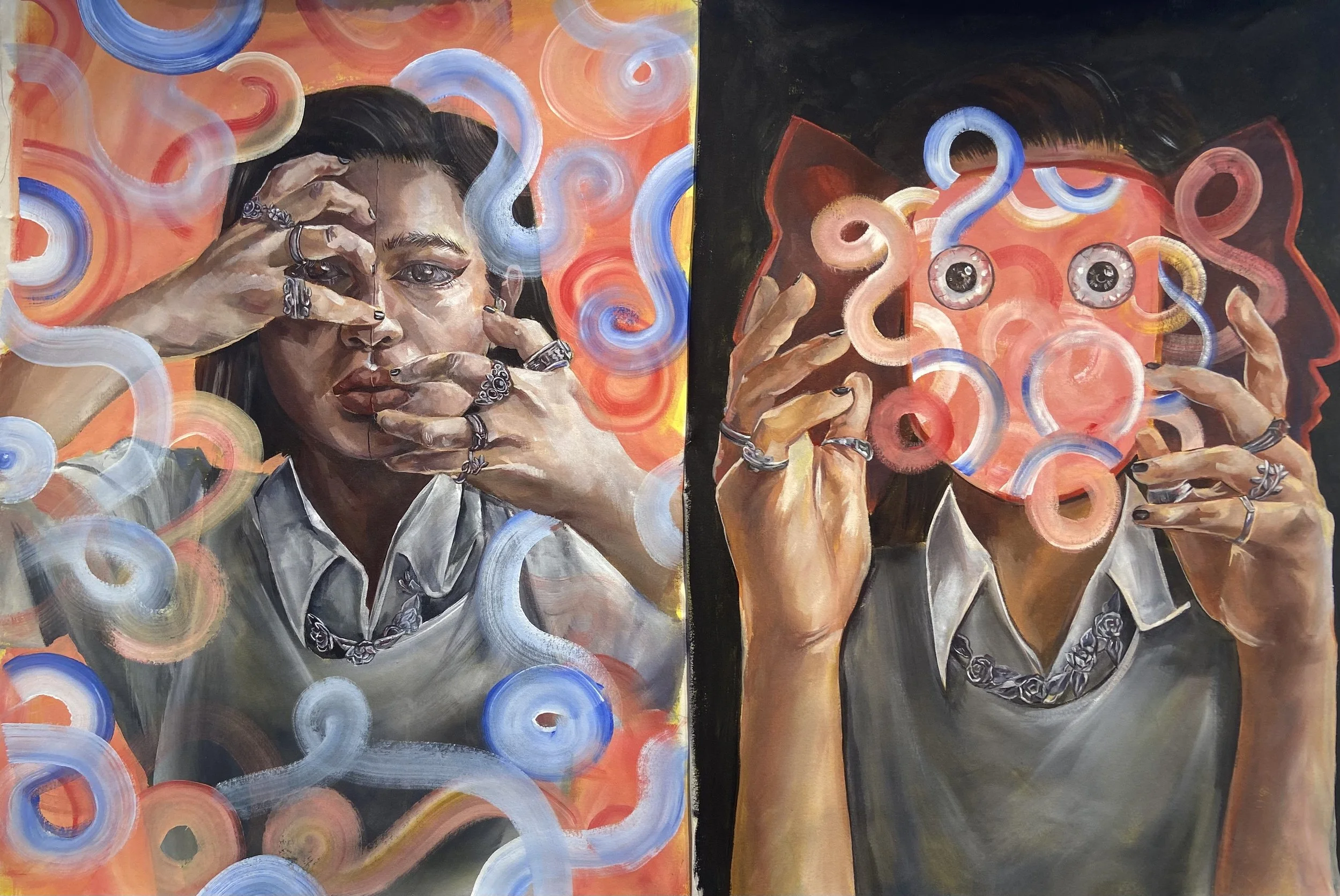 What is Inside Diptych; 2ft x 3 ft each; acrylic paint on canvas