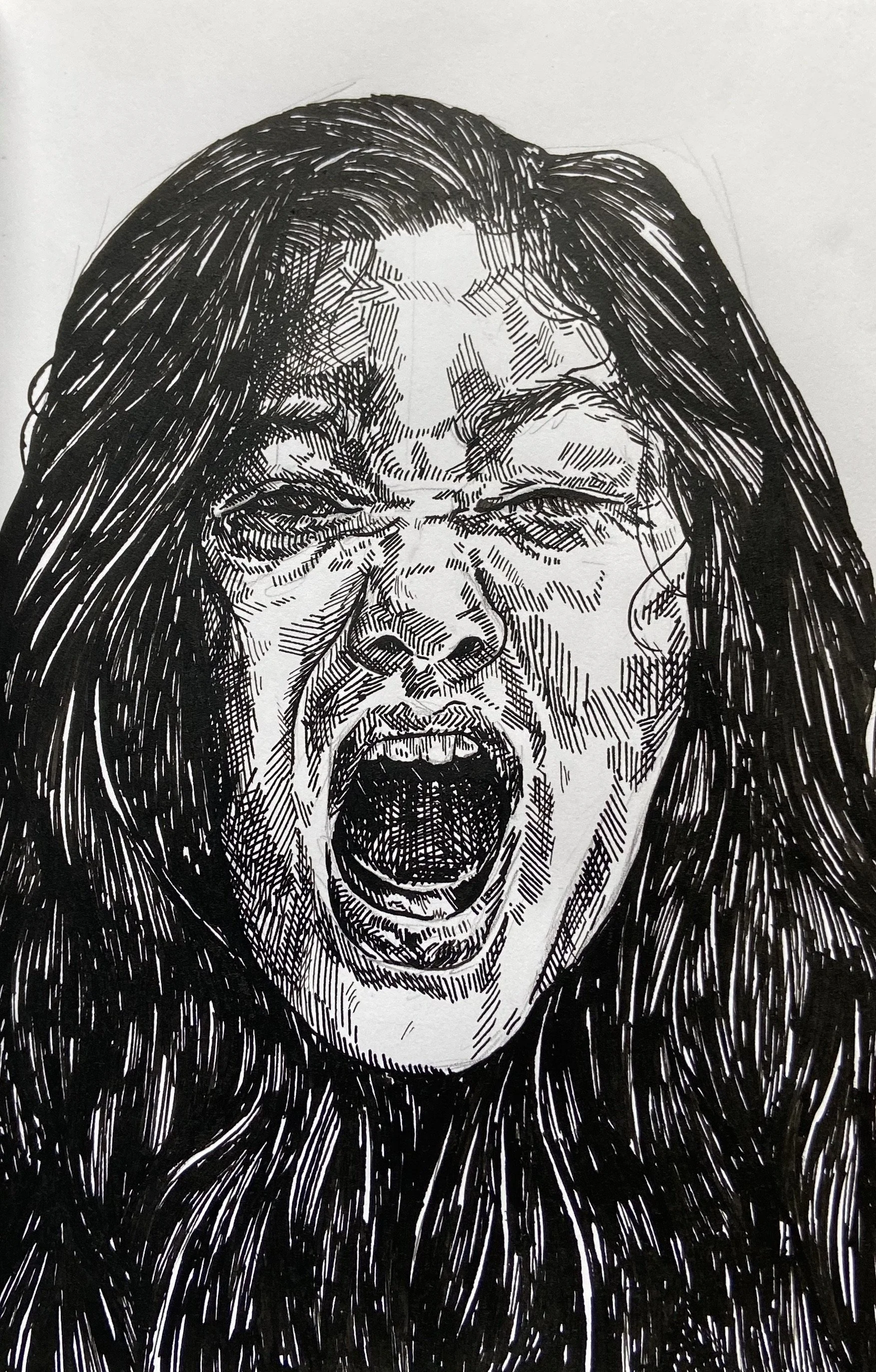 Scream; 8.5” x 6”; nib tip pen and ink on paper